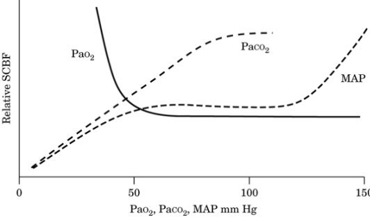 the brain. Between 20 and 80 mm Hg, SCBF is linearly